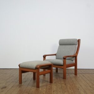 Danish lounge chair and ottoman in solid teak wood by EMC Mobler