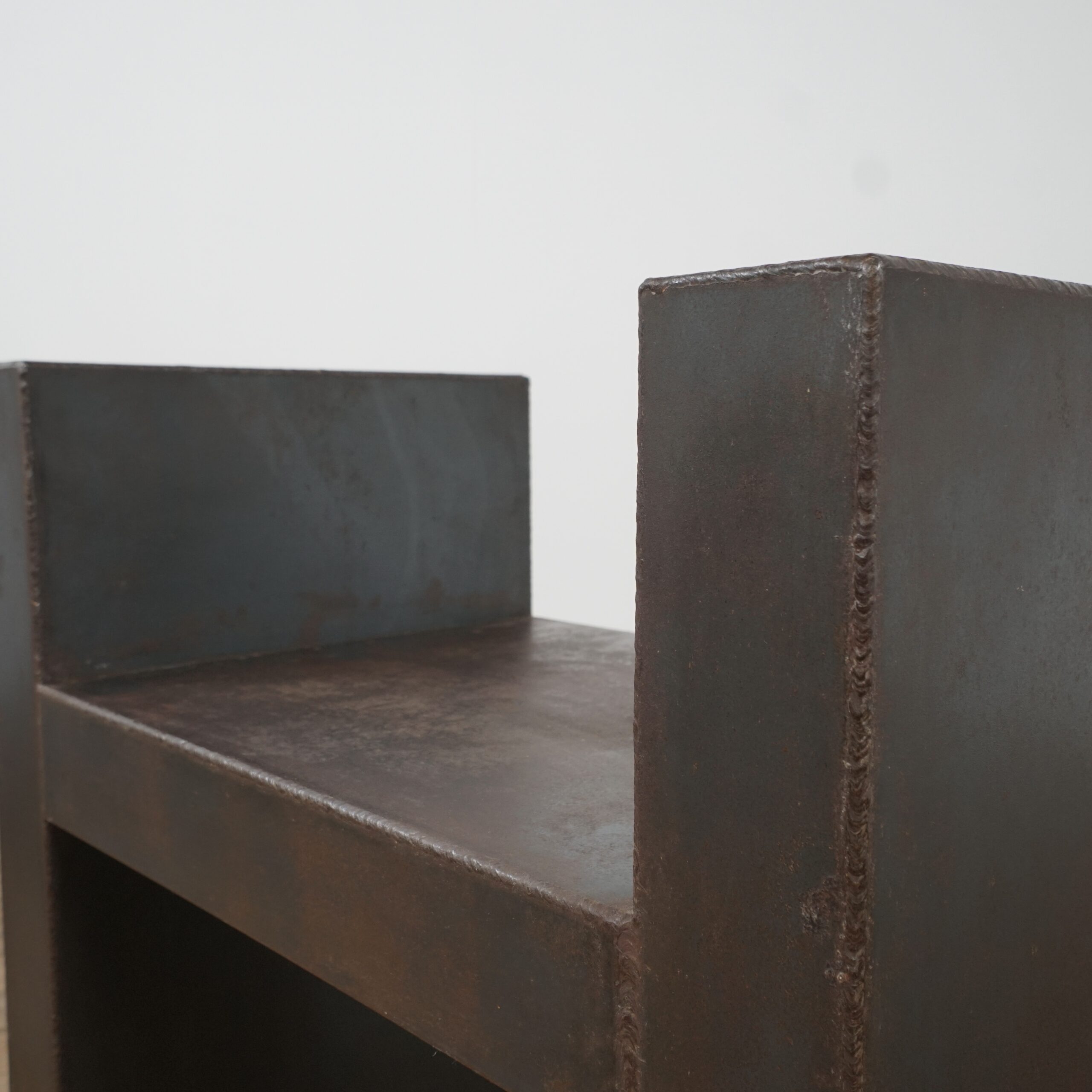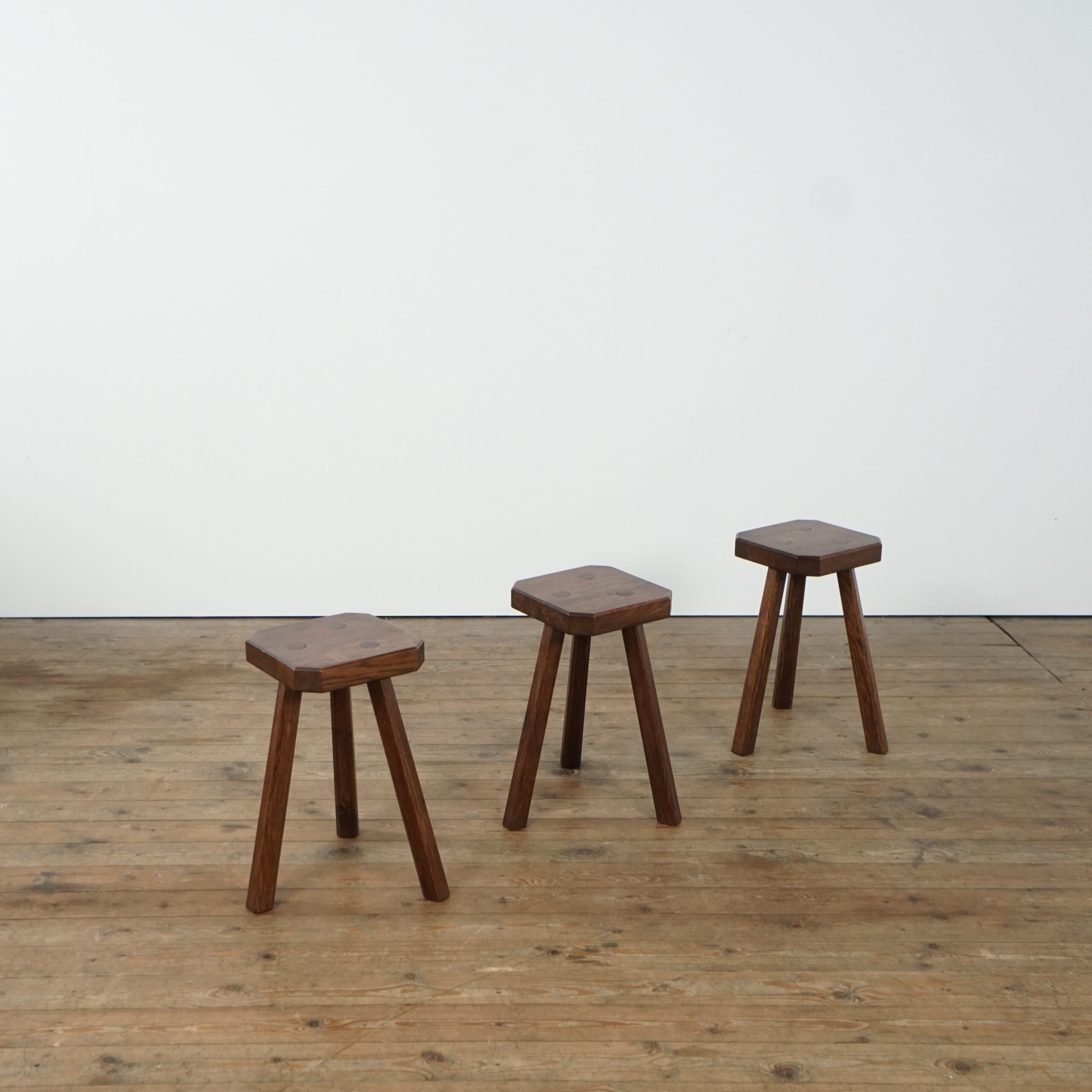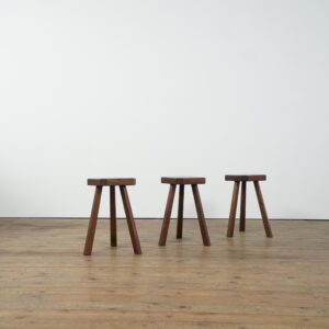 Set of 3 brutalist wooden stools