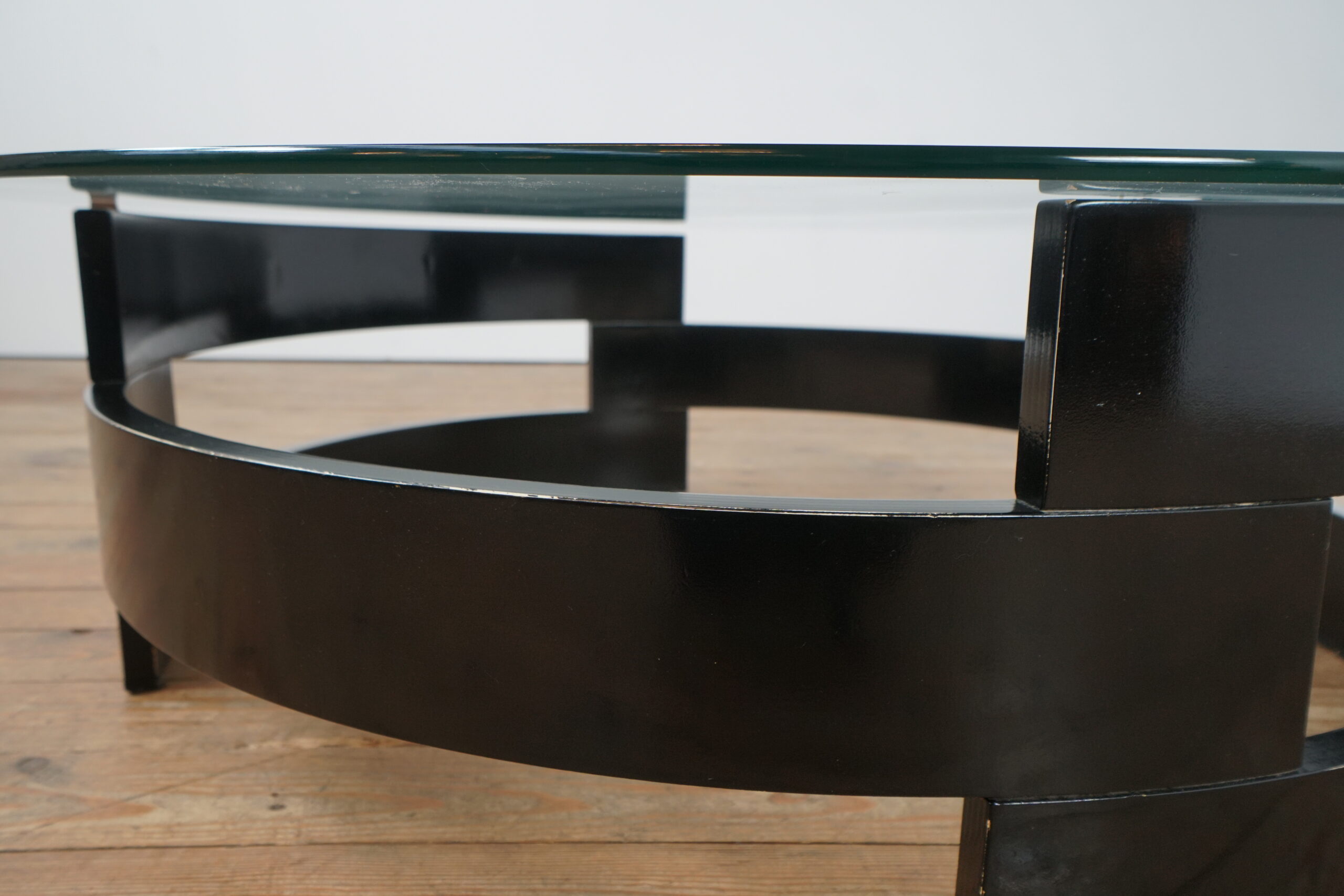 Black painted wood and glass space age coffee table