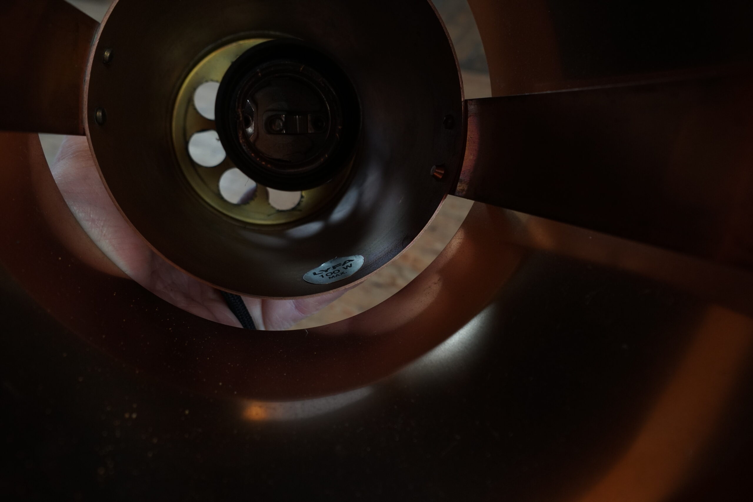 Danish copper and black lacquered metal pendant lamp by Bent Karlby for Lyfa (two pieces available)
