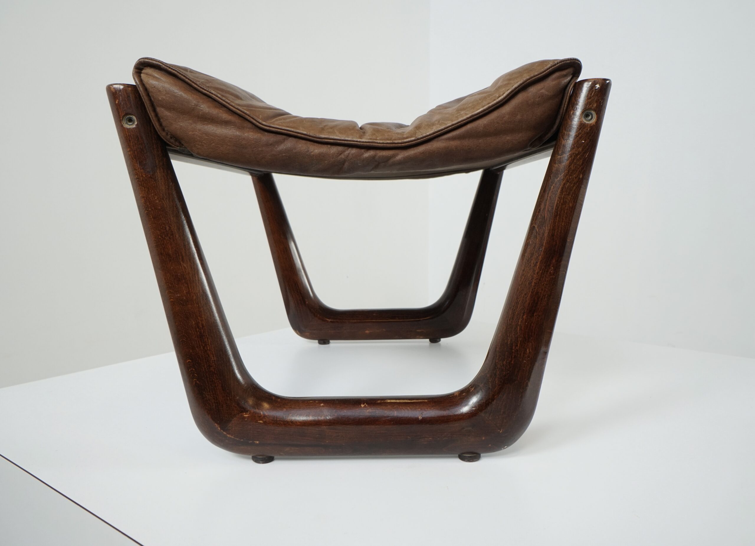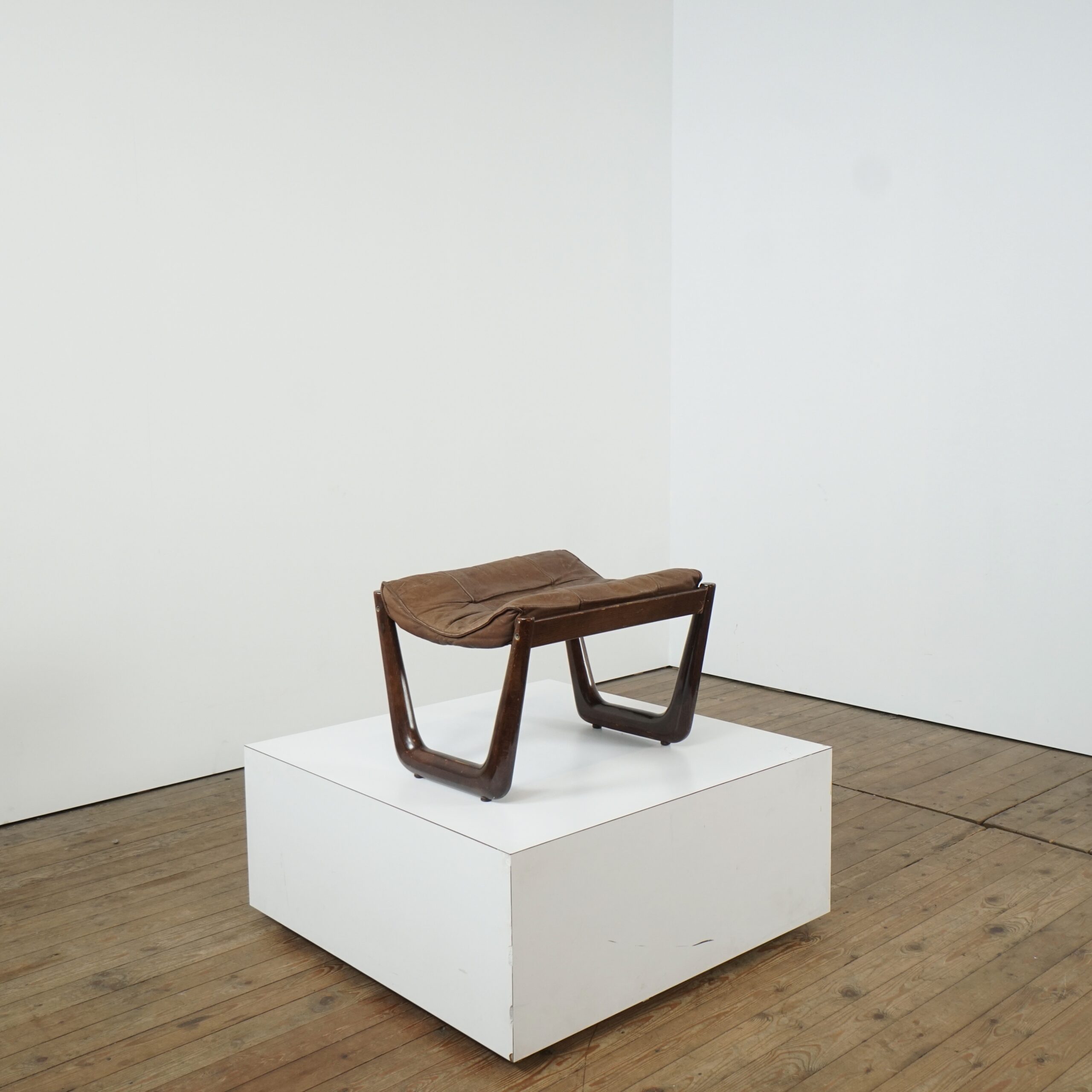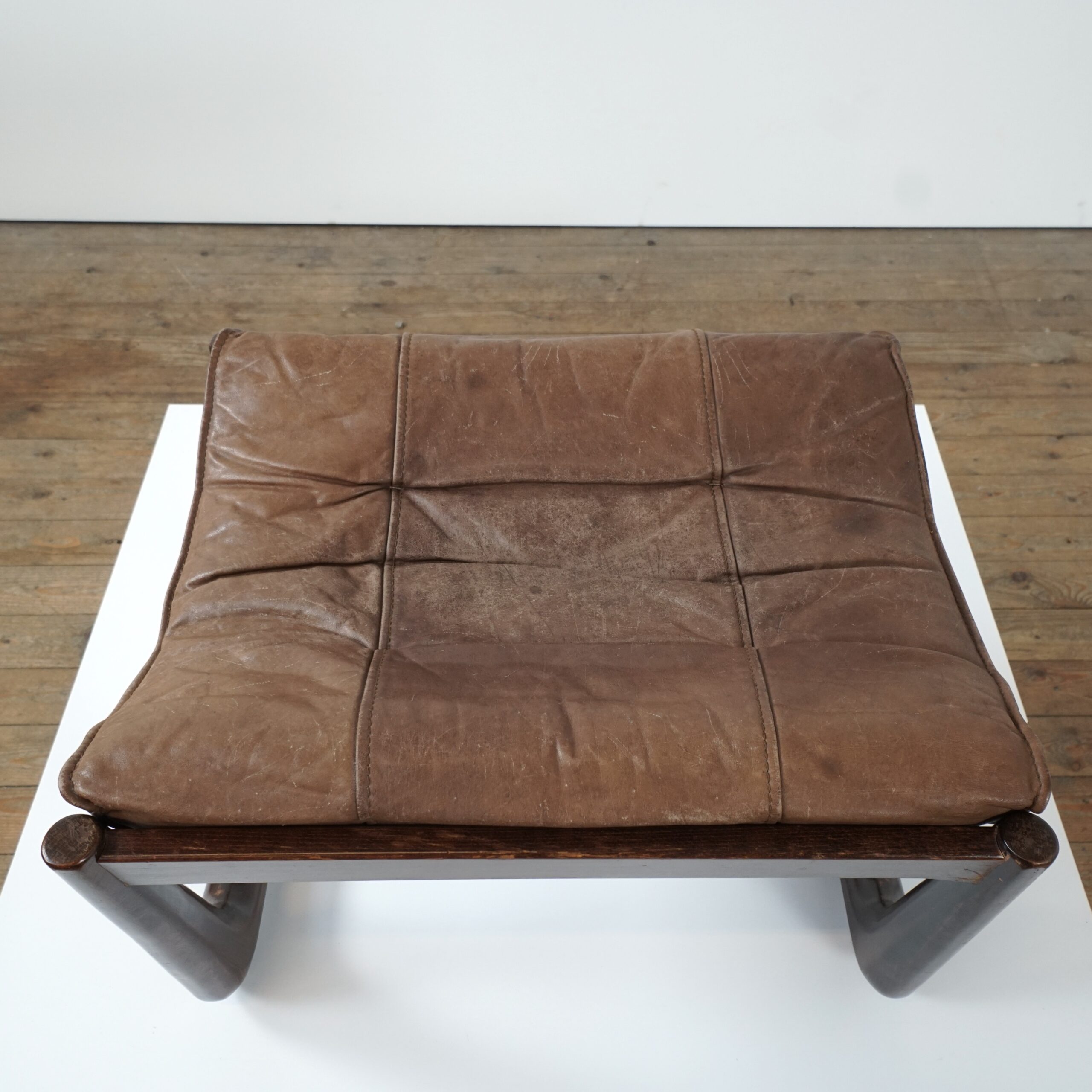 Leather poof/ stool made in Norway