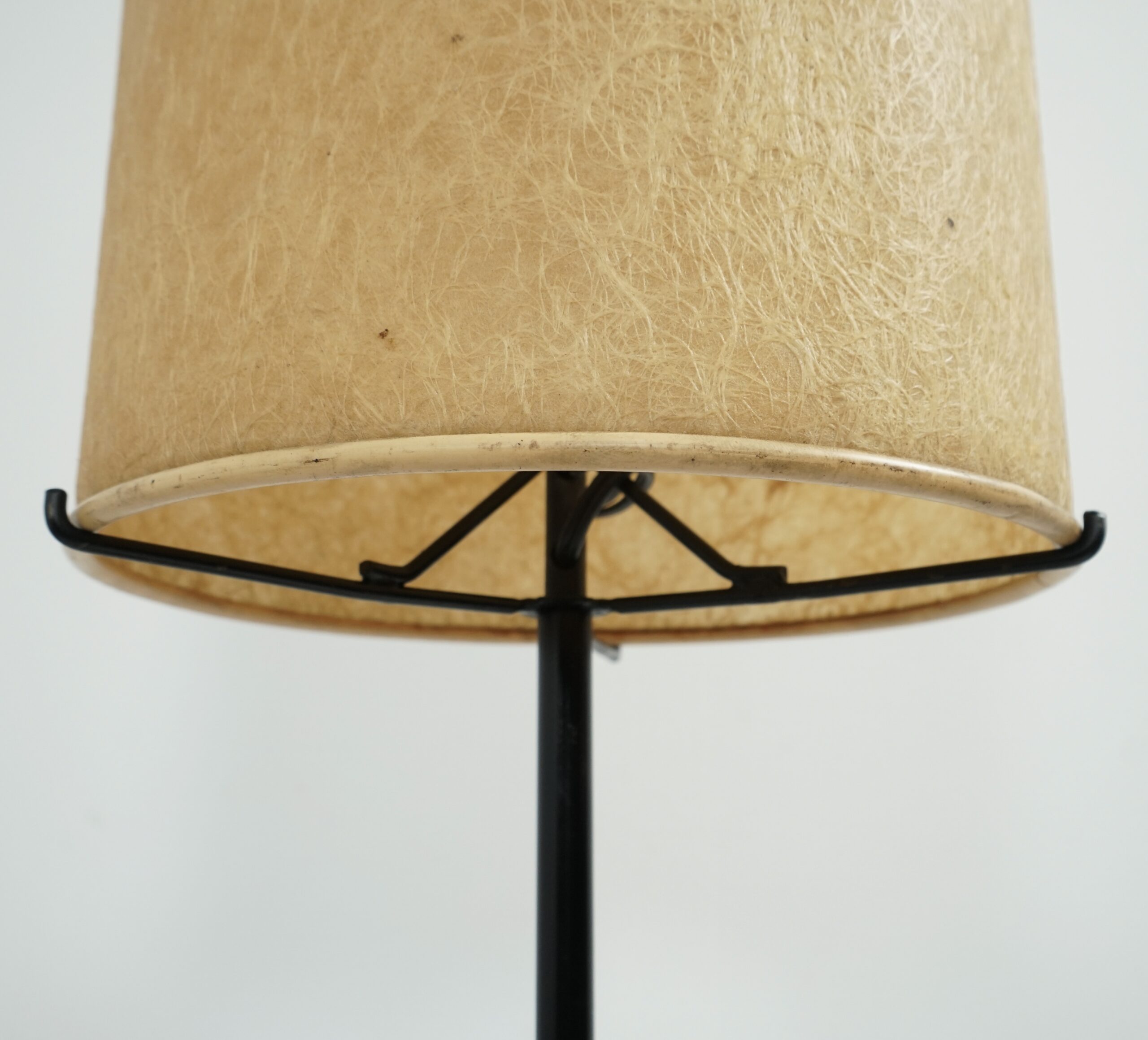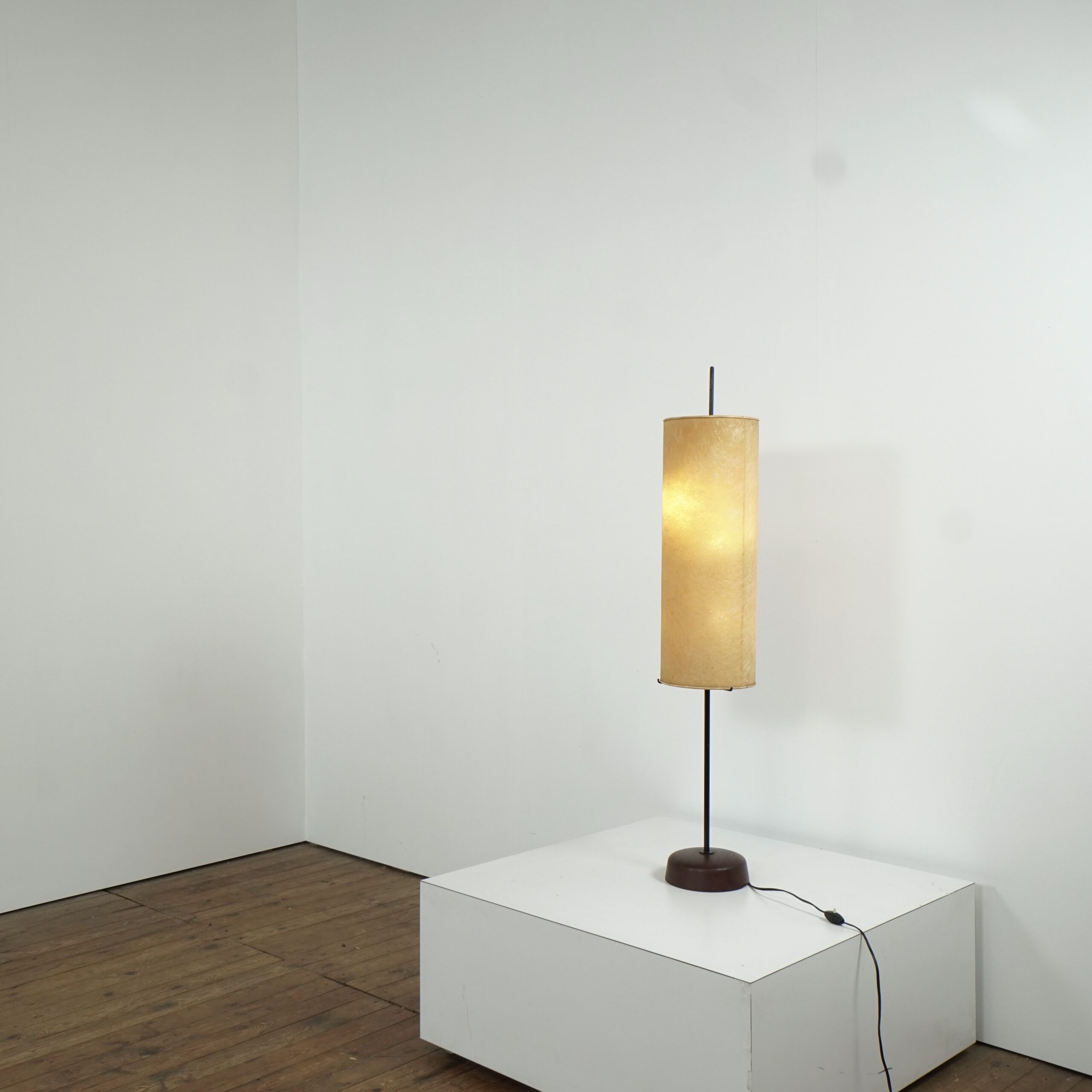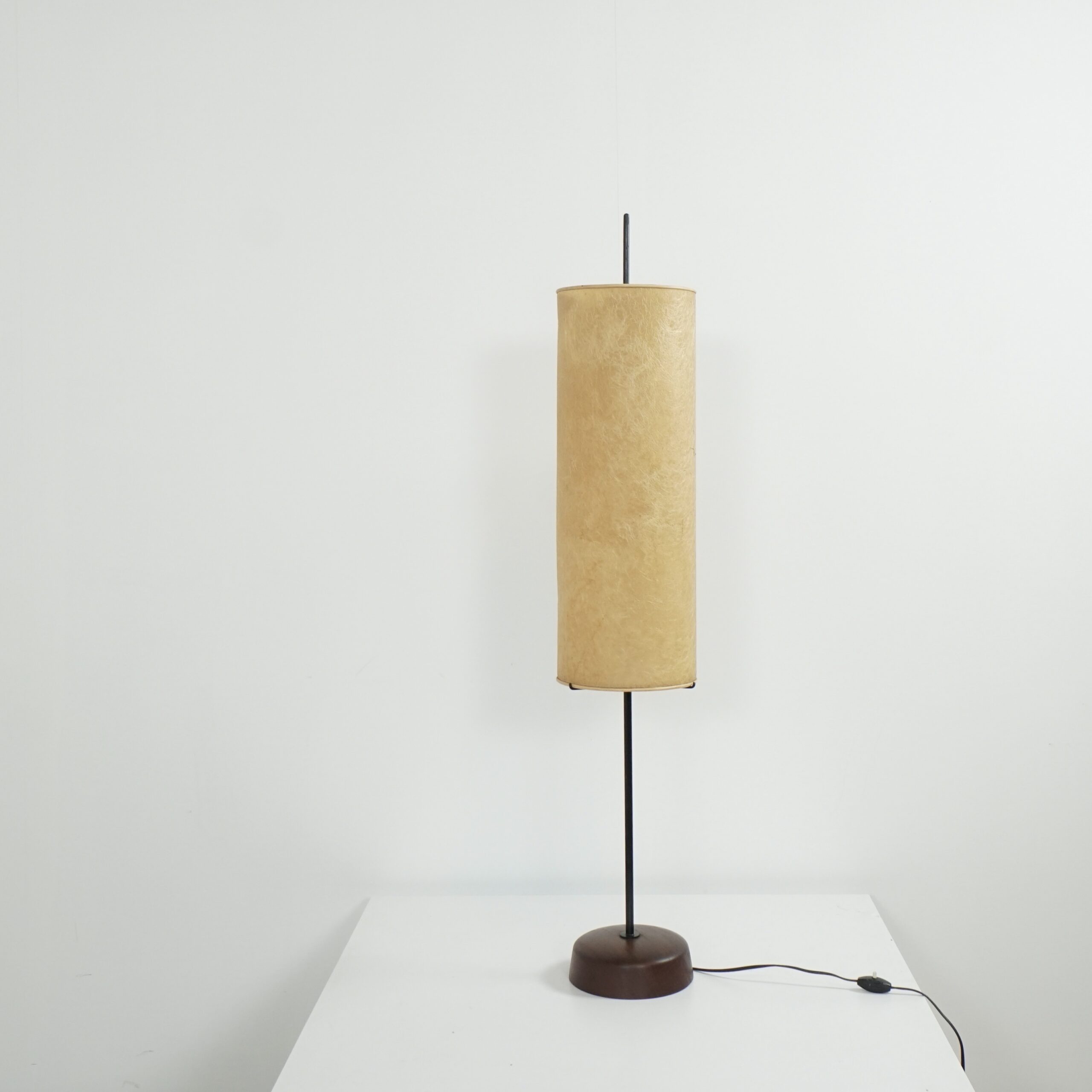 Modernist floor lamp with fiberglass shade and teak base