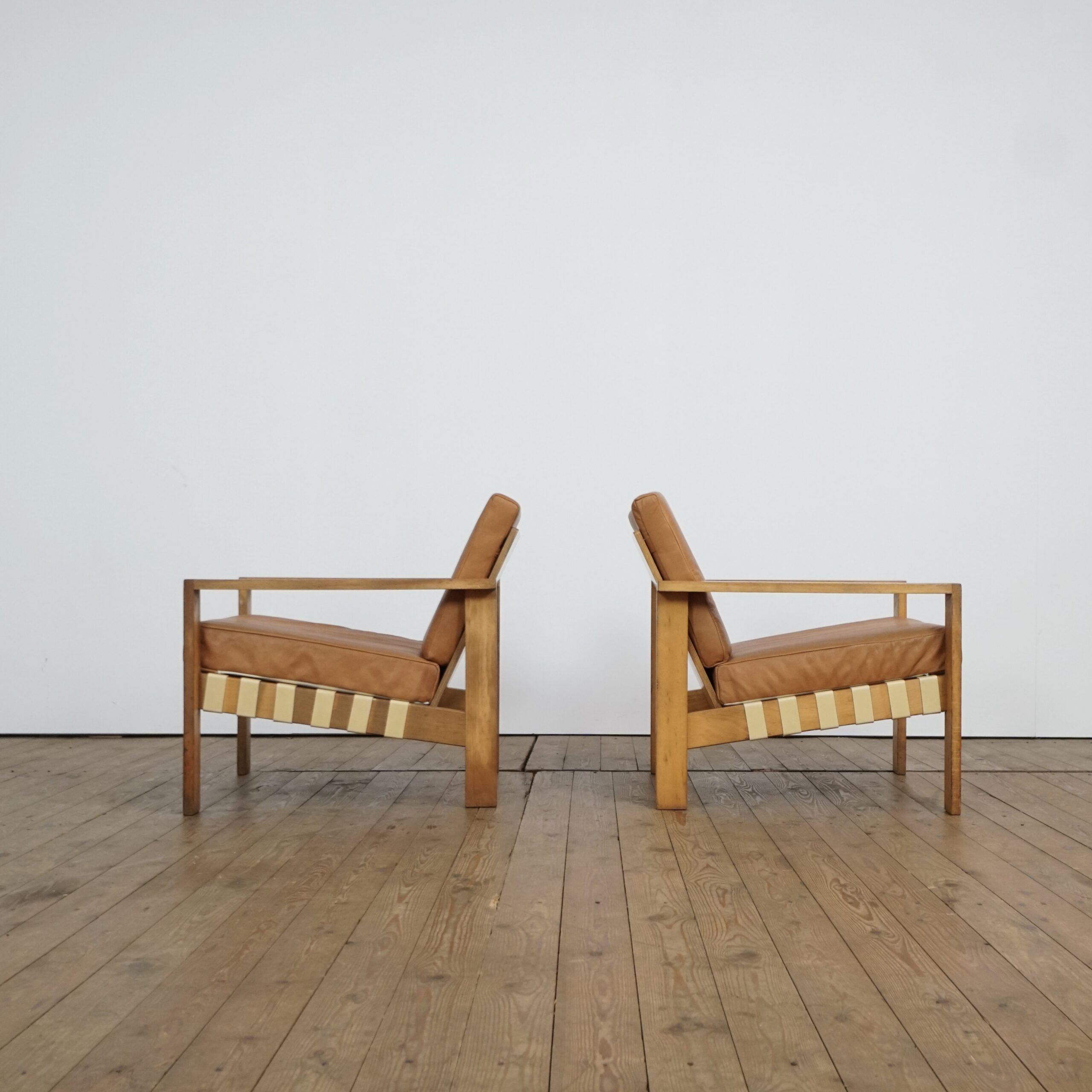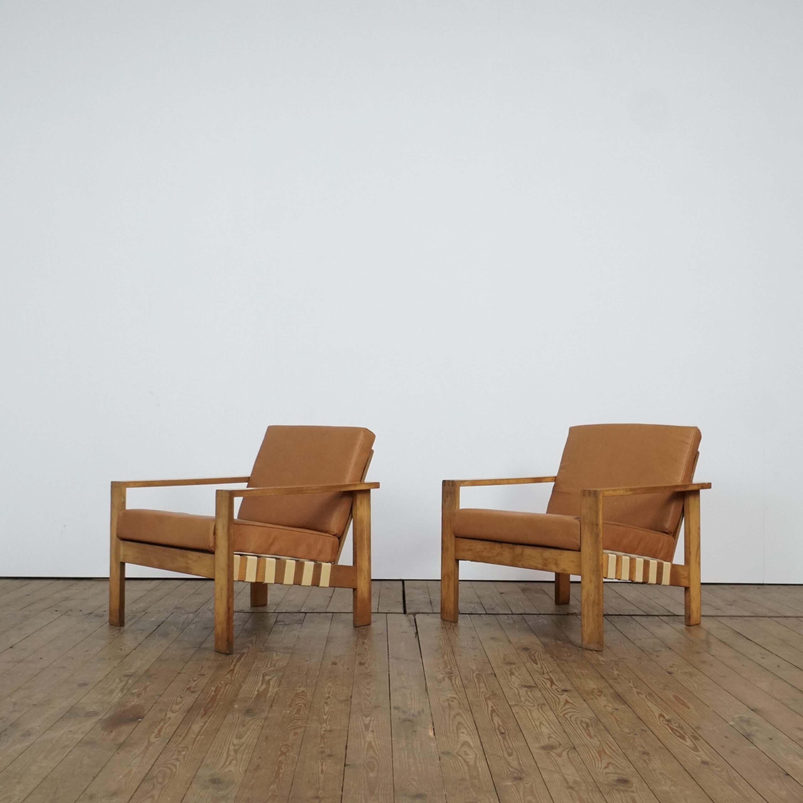 Set of two Modernist leather lounge chairs by Roland Gibbard UK
