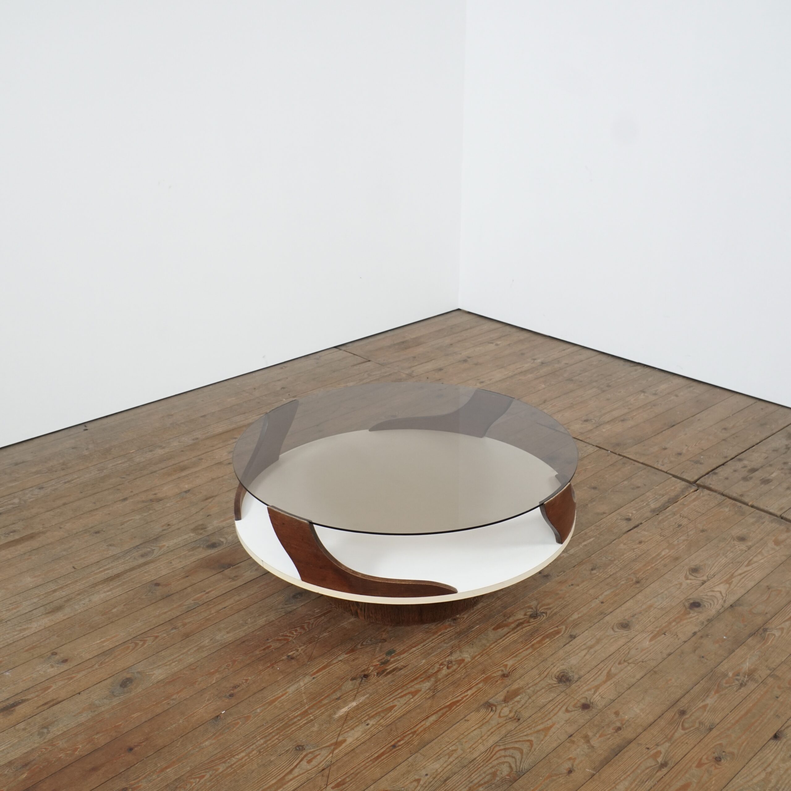 Space age coffee table in Wengé and glass