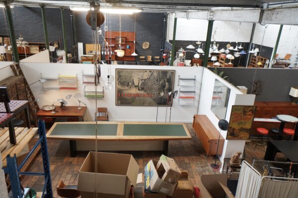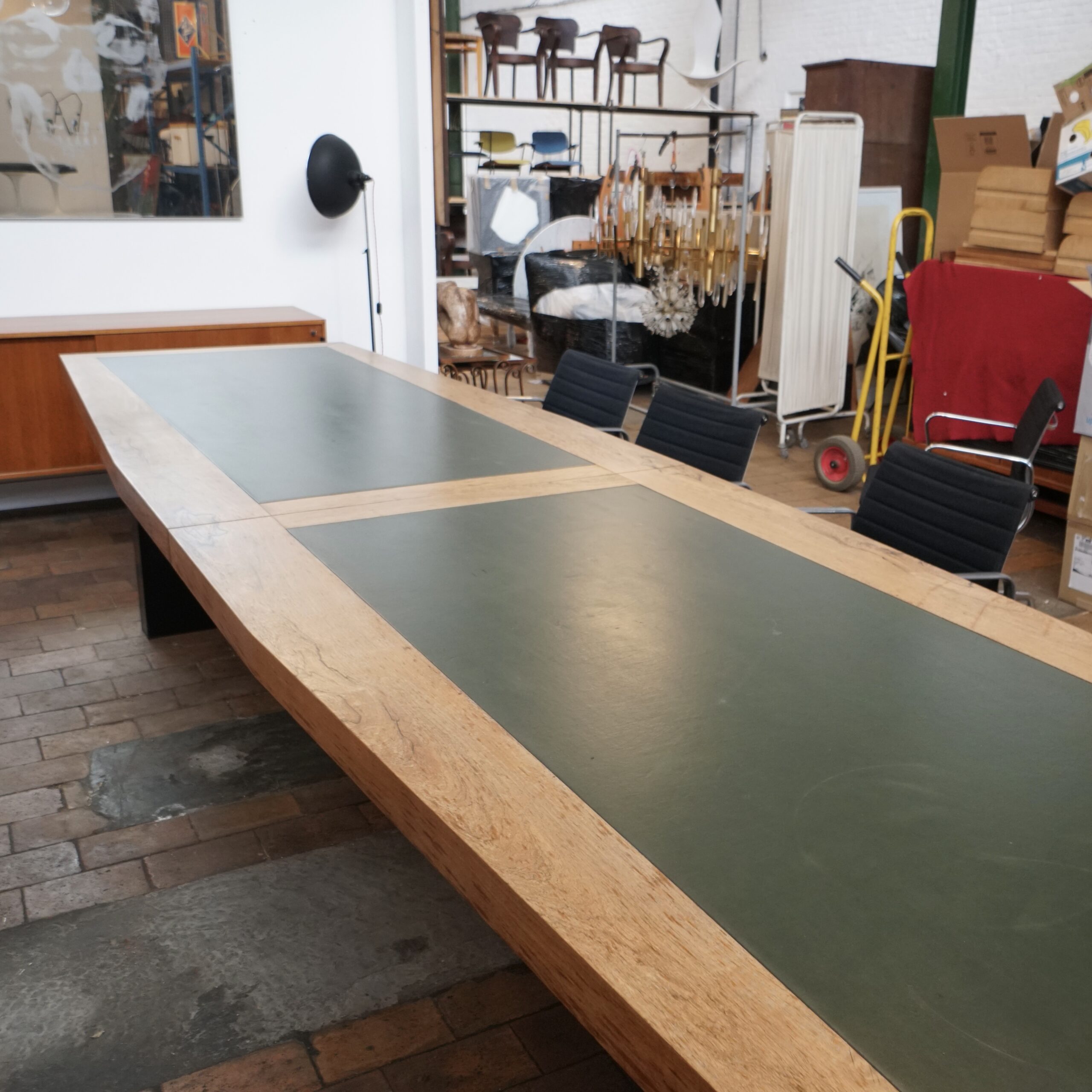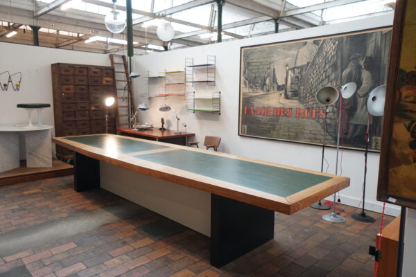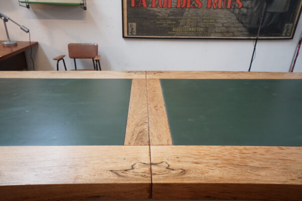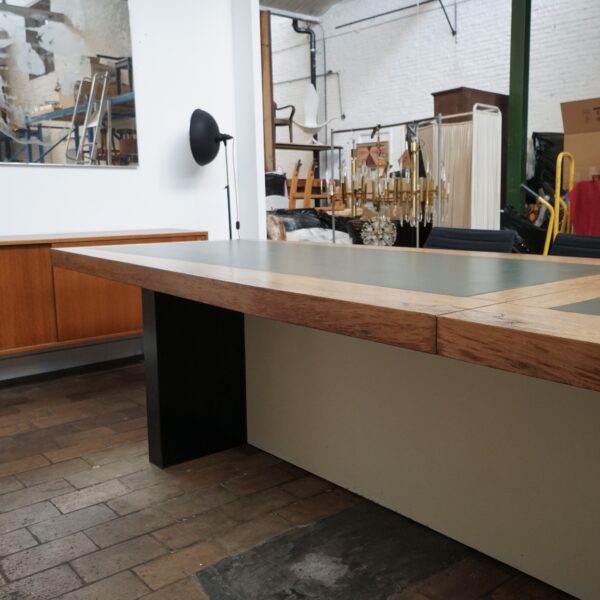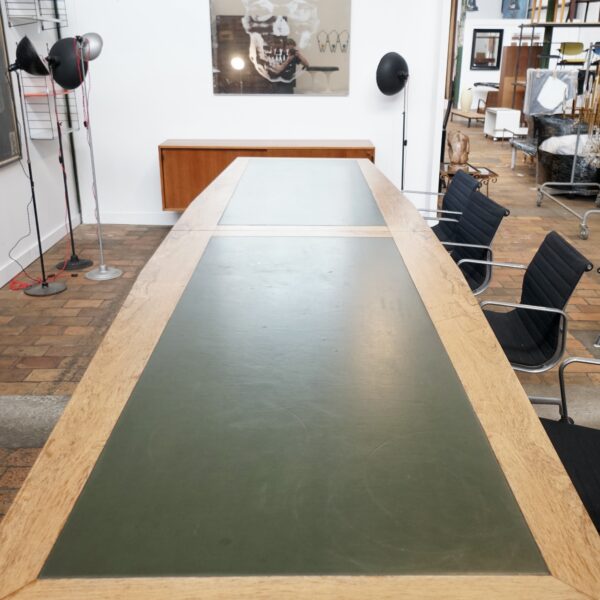 XXL table with veneer oak and leather top (fully demountable for easy transport)